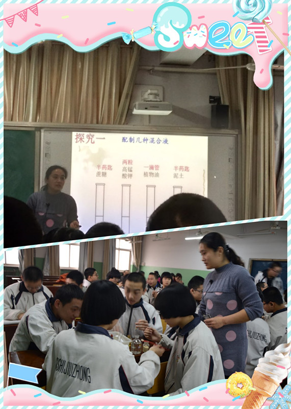 在听课环节中,由49中王玉芳老师和8中高松梅老师为大家展示《溶液的形成》的同课异构。这两节课都凝聚了全体教研组成员的力量,从集体备课到课例展示的整个过程都作了精心的准备,切切实实把本次活动作为交流与提升教学水平的平台。